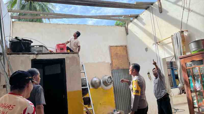 Home Polri Bhabinkamtibmas Polsek Polewali Datangi TKP Pohon Kelapa Tumbang Timpa Rumah Warga di Polewali, Tidak Ada Korban Jiwa